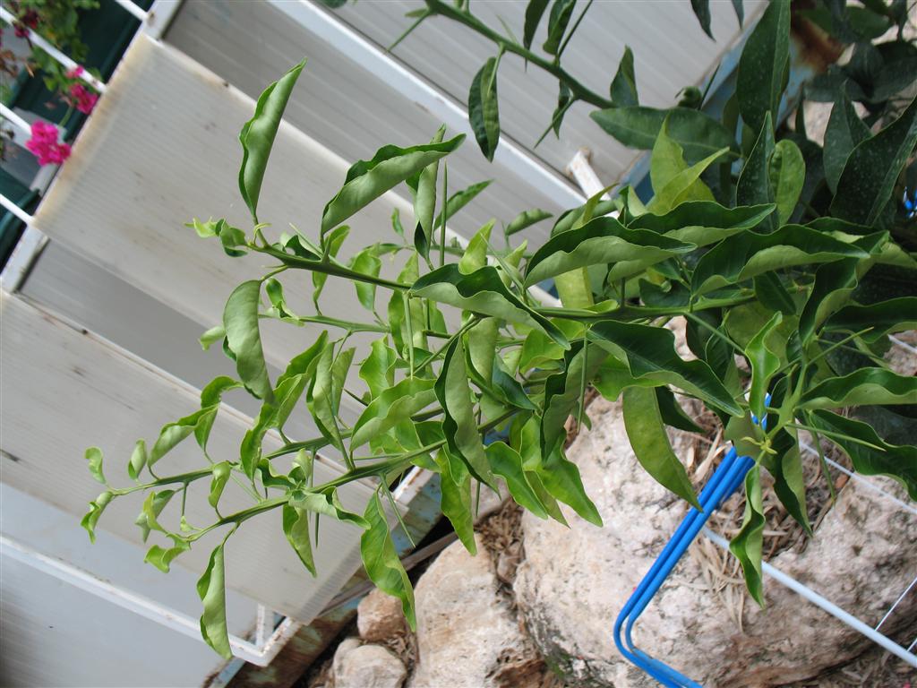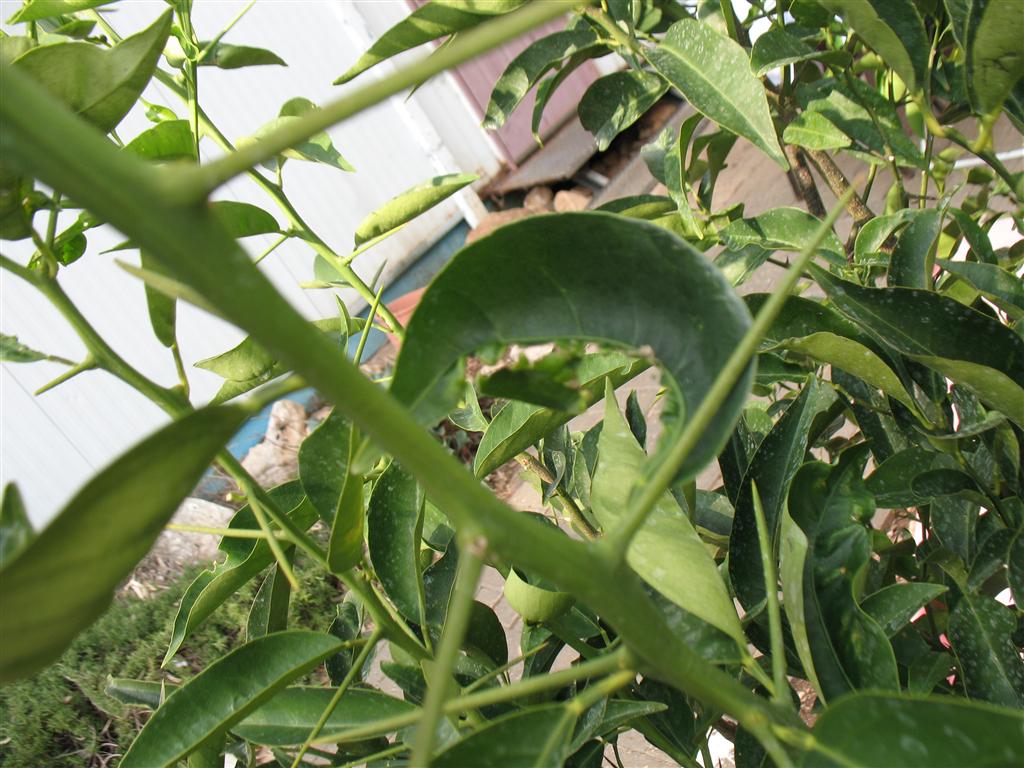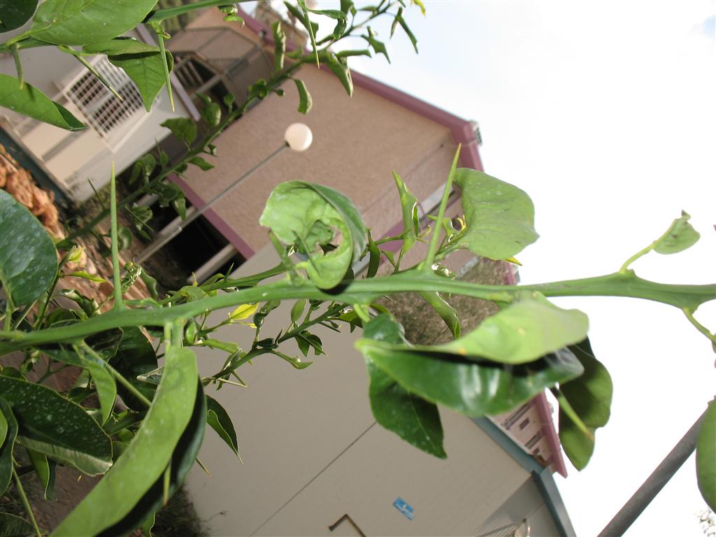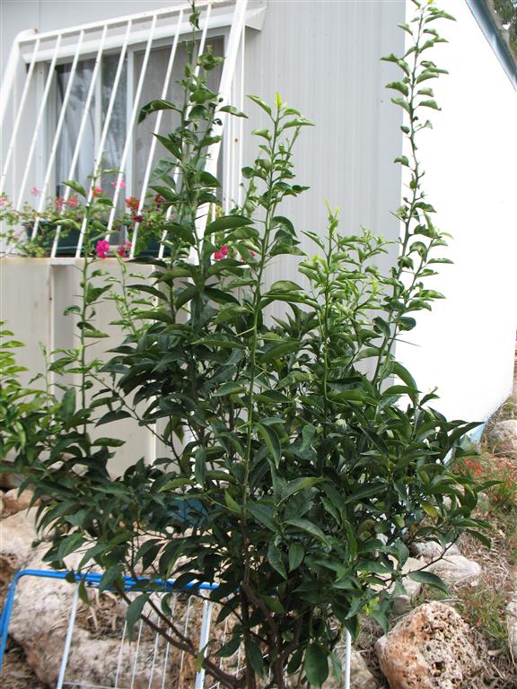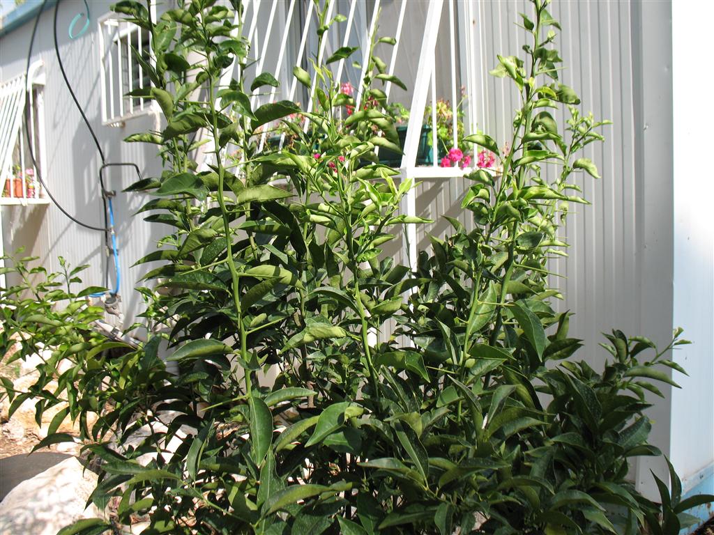 ניתקלתי בעץ קלמנטינה (כנראה) קטן עלוב ומסכן. לפי עובי הגזע הוא הוא לא פחות מ 5 שנים ועקב חוסר טיפול הוא לא התפתח