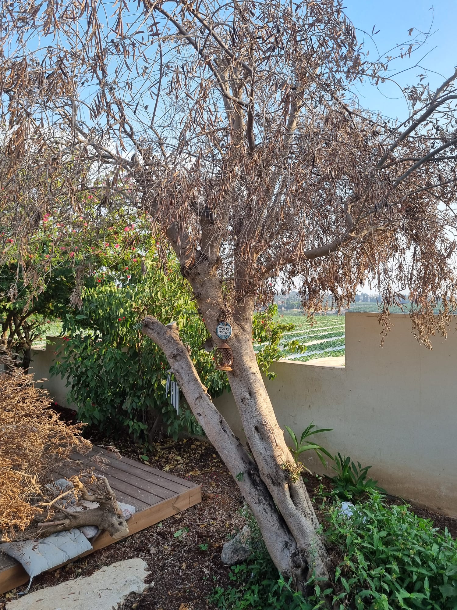 יש לי עץ זית עם חורים קטנים בגזע וענפים יבשים