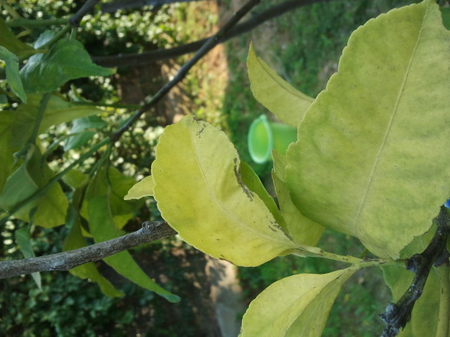 במקרה הזה, לצערי, לא ניתן לקבוע בברור מה הגורם לתופעה אם כי יש לי חשד אותו אפרט מיד. הסימפטומים הנראים בתמונה משותפים לכמה גורמי מחלות וכן לנזק פיזיולוגי. מחסור במיקרונוטריאנטים דוגמת אבץ, מגנן, וברזל עלול להראות באופן דומה, וכך גם מחלה הנגרמת על-ידי וירוס הטריסטזה. אבל יותר מכל נראית לי (על-פי התמונות) הפגיעה כמחלת הירוקת (greening) הנגרמת על ידי הבקטריה Candidatus Liberibacter asiaticus. קביעה ודאית תיתכן רק לאחר בדיקת מעבדה, אשר אינה אופציה בגידול הביתי. להציע לך להשמיד את העץ כדי להמנע מאפשרות התפשטות המחלה לעצי הדר נוספים בסביבה - יהיה מוגזם על סמך המידע הקים מהתמונות. מאידך, אין לי כל הצעה לטיפול שיועיל לעץ לשרוד, מלבד לקוות שהוא יתגבר בכוחות עצמו. זה קורה לעיתים רחוקות, אבל בהעדר פיתרון אחר גם זו אפשרות שצריך לשקול. עקוב אחר העץ ואם המצב יחמיר לכדי הצהבה מלאה יותר, ובפרט אם תבחין בזמורות מתיבשות, או בשרף השופע מהגזע ו/או הענפים, לא תיוותר ברירה אלא לעקור אותו ולשרופו. במקרה כזה אל תשתול במקום עץ הדר אחר בטרם תחטא את הקרקע.