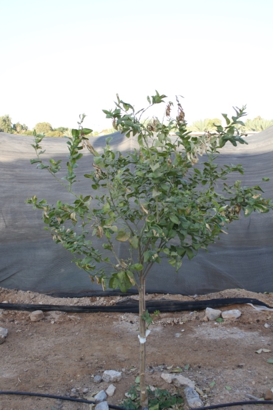 המופע מזכיר את מחלת המלסקו הנגרמת על-ידי הפטריה Phoma tracheiphila. הפגיעה מתחילה מלמעלה, בזמורות צעירות, ונודדת לאיטה כלפי מטה דרך הענפים אל הגזע. כאשר היא מגיעה לגזע התחתון העץ ימות. לפעמים ההתפתחות מהירה מאוד אבל לרוב היא איטית ולוקחת זמן. כמו כן, לא כל ענפי העץ נפגעים בהכרח, אבל הסוף לא תלוי בכך. הפתוגן תוקף בעיקר עצי לימון, וכמובן המוחלשים זמינים יותר להתקפה. העץ שלכם סבל מצמא דבר שהחליש אותו. עץ לימון בגיל הזה, בצפון הארץ, זקוק לפחות ל-100 ליטר מים בשבוע, פי 2.5 ממה שאתם מספקים לעץ. בערבה החמה הייתי מכפיל את הכמות, ומחלק את המנה השבועית לשלוש השקיות של 60-70 ליטר כל אחת. אל תשקו מדי יום, אפשרו לשורשים להתאוורר ולנשום. עדיף להשקות בטיפטוף איטי בשעות הלילה.