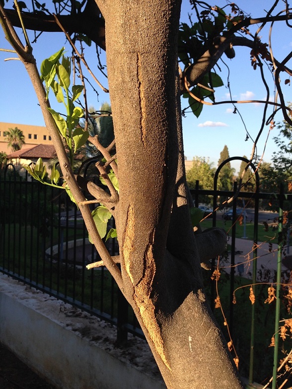יואב יקירי, דווקא רואים היטב את הבעיה: קליפת הגזע נסדקת ומתנתקת.