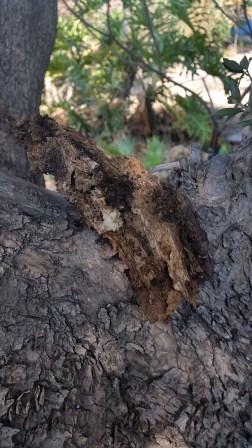 גיליתי בכמה עצי זית ותיקים, חורים גדולים בגזע שנראה כאילו נוצרו עקב ריקבון. הגזע כולו מתפורר ונוצרים חללים גדולים.
