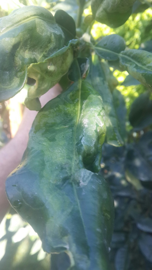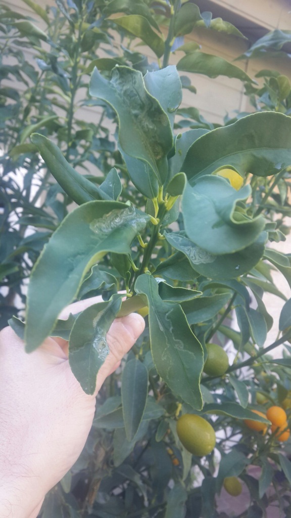 מזה זמן רב אני שם לב כי העלים בעיקר בחלק העליון של העץ מסתלסלים וכן בימים האחרונים שמתי לב כי בעץ הפומלה העלים בחלק התחתון עם כתמים לבנים כמו עובש - מצרף מס' תמונות