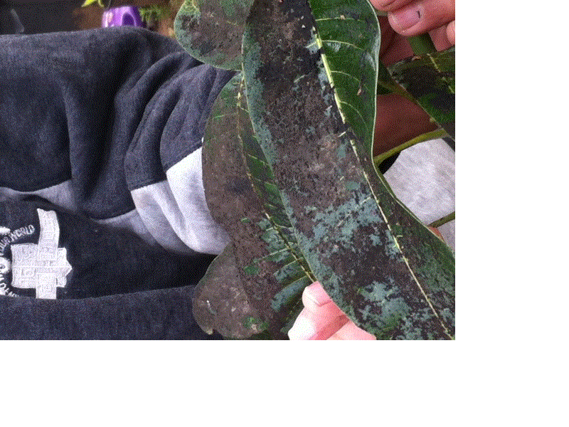 העץ סבל מכנימות באביב ובקיץ שעבר.הן משכו פטרית הפייחת וזה הצע השחור שאתה רואה.יש לתת לעלים להתחלף. בינתיים לתת לעת מנת קונפידור של לפחות 10 סמ"ק.בהגמעה לקרקע. קיימת אפשרות לרסס את העץ בשמן חורפי שבין היתר הוא גם ממיס את הפייחת ומסיר אותה. בעיקר חשוב לטיפו בגזע ובענפים שאינם מתחלפים.