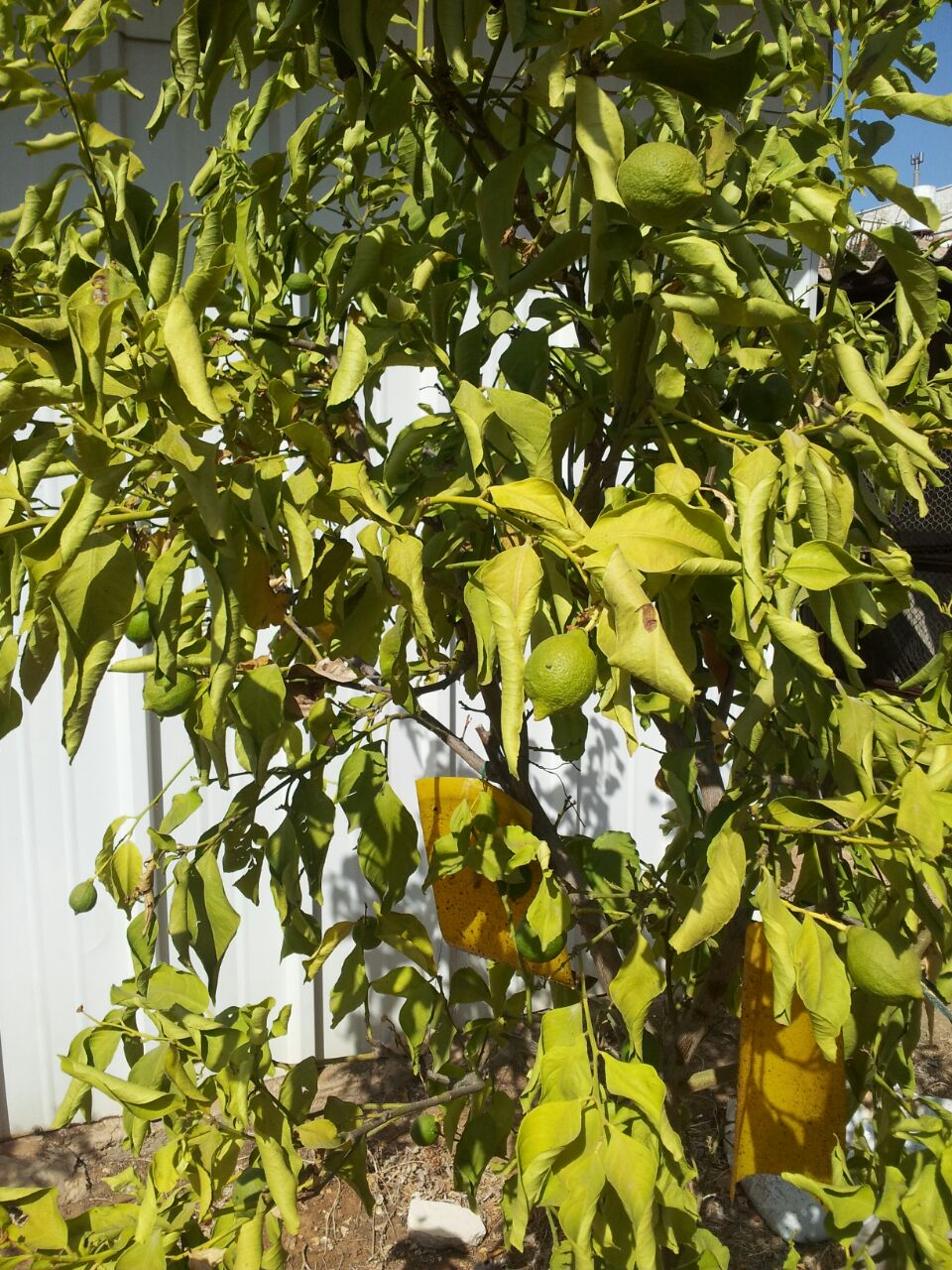 נשירת עלים חזקה, הפרי הפסיק לגדול והלימונים קטנים.