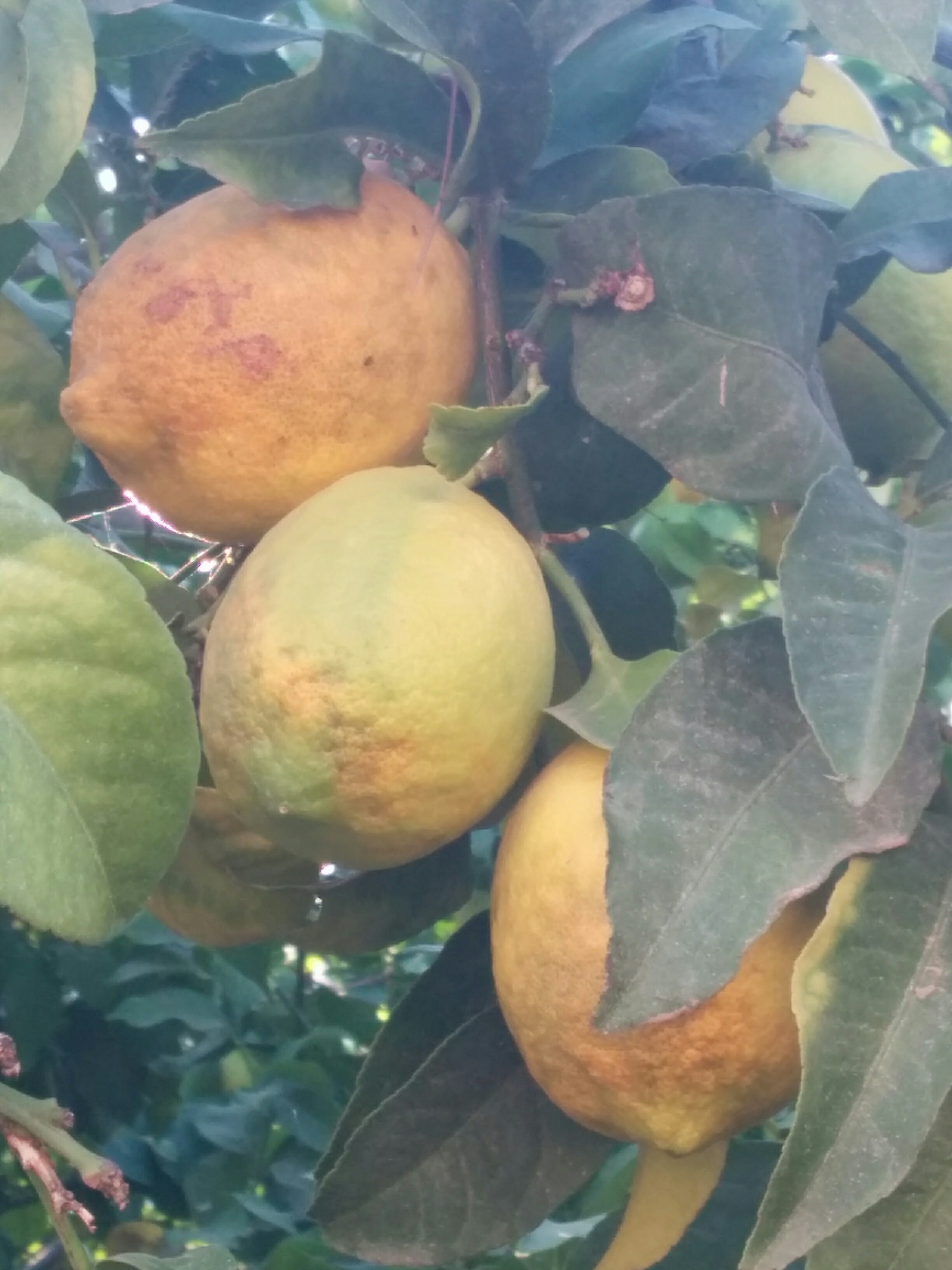 העץ לימון שלי בת כ8 והשנה הפרי גדל עם סימנים חומים כפי שראוים בתמונות. מה עושים?