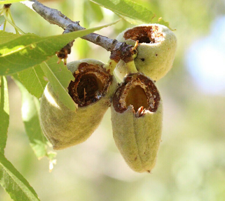 רגע לפני שמגיע זמן הקטיף אני שם לב שבכל הפירות כולם עבר איזשהו מזיק שפשוט חפר בהם חור גדול וחיסל את השקד שבתוכו.