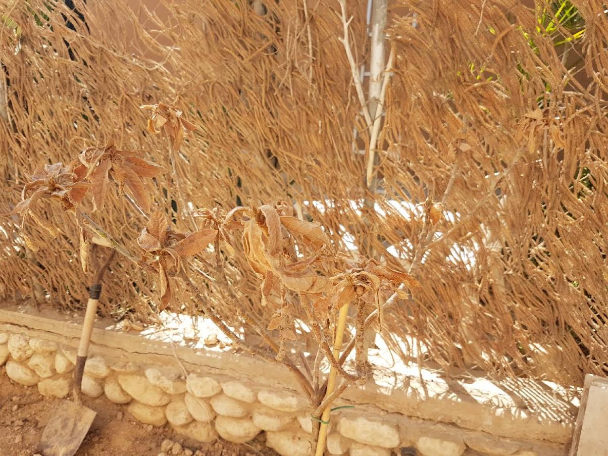 לגבי התפוח, הוא נראה די בסדר במגבלות משטר ההשקיה השגוי. כיום הוא על סף שלכת. הגבר השקיה גם לו, ולפי הנראה לכל צמחי הגן שלך, והקפד לאסוף את כל העלים הנגועים/מתיבשים והרחק אותם לאשפה. כך גם עם האבוקדו, ובכלל.