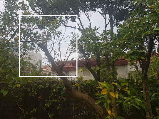 עץ תפוז בוגר התחיל להתייבש בצידו האחד. שאר חלקי העץ בריאים ומלבלבים.