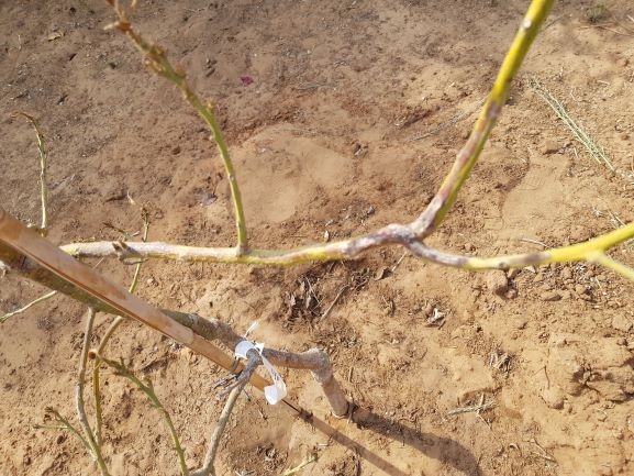האס-כל העלים נשרו ובענפים ובגזע יש כתמים חומים.