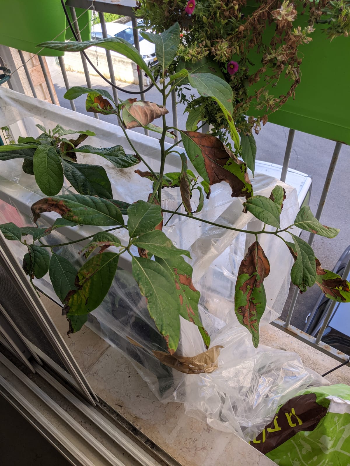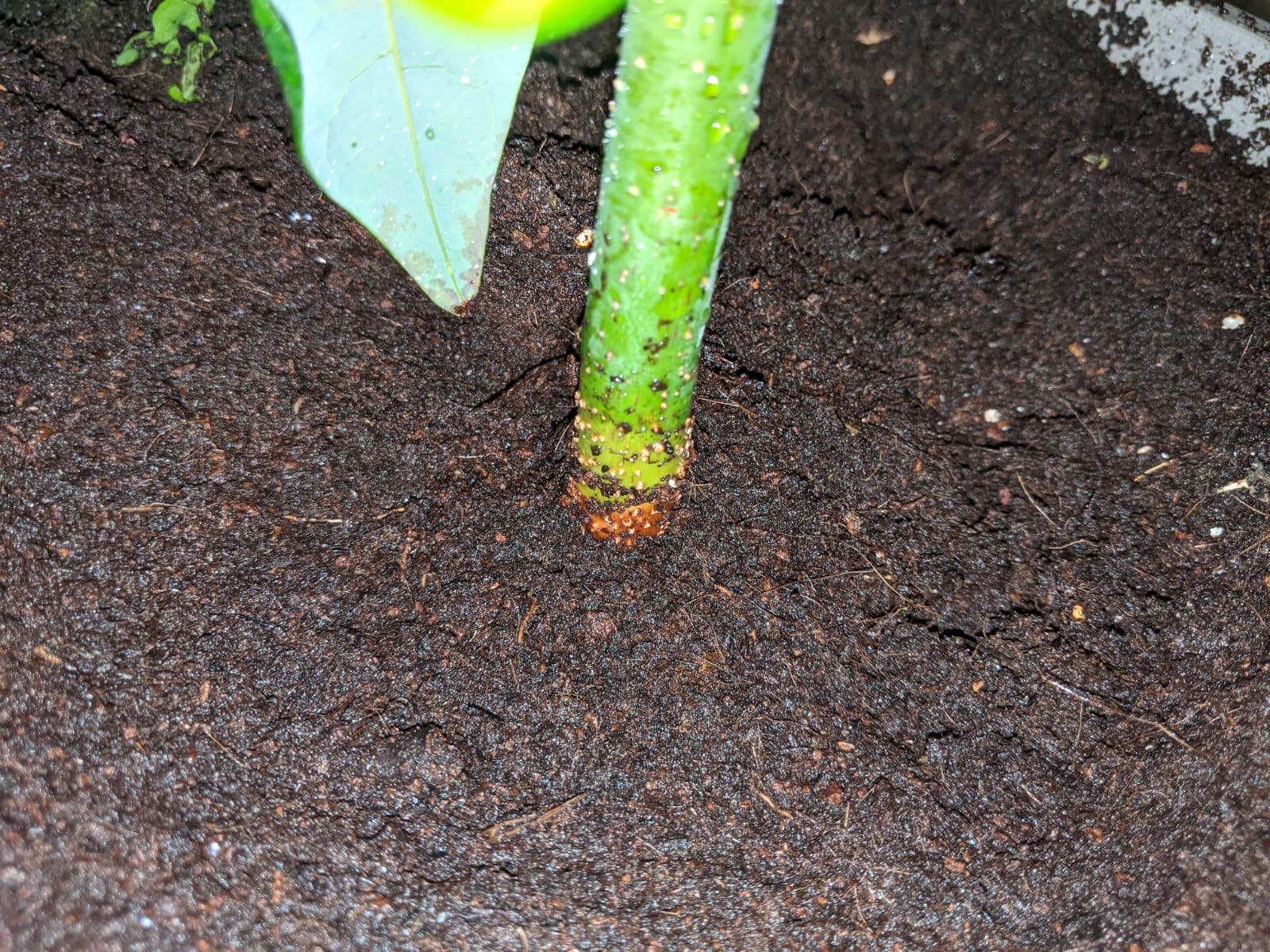לפני חצי שנה התחלתי לגדל אבוקדו מגרעין. בזמן האחרון מתחילים להופיע כתמים חומים על העלים ונקודות לבנות על הגבעול ליד הגרעין.