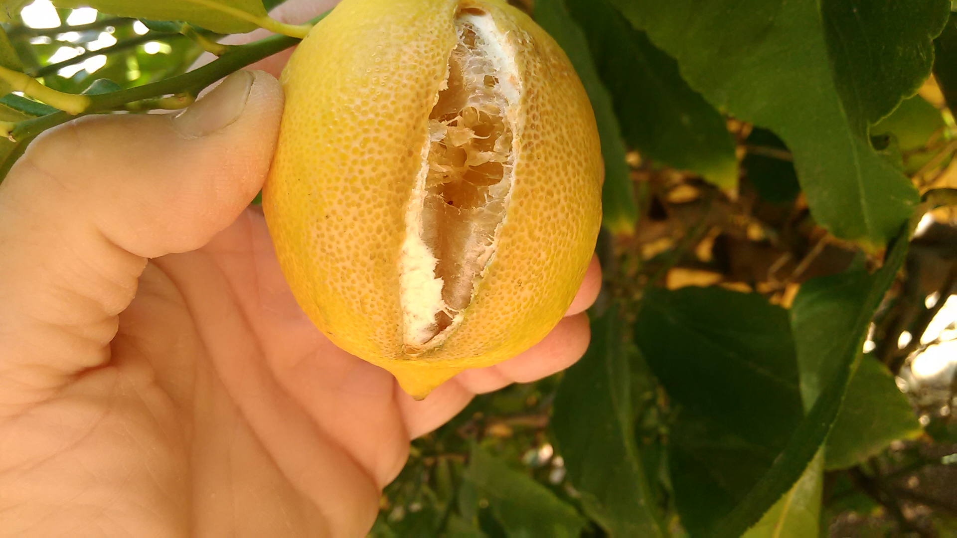 שלום רב. יש לי עץ לימון כבר הרבה שנים. תמיד נתן הרבה פירות .בדרך כלל גם גדולים בגודל. השנה הלימונים יצאו קטנים וכמעט חצי מהם פשוט נסדקים ונרקבים כבר על העץ. האם יש הסבר לזה ומה אפשר לעשות? תודה.