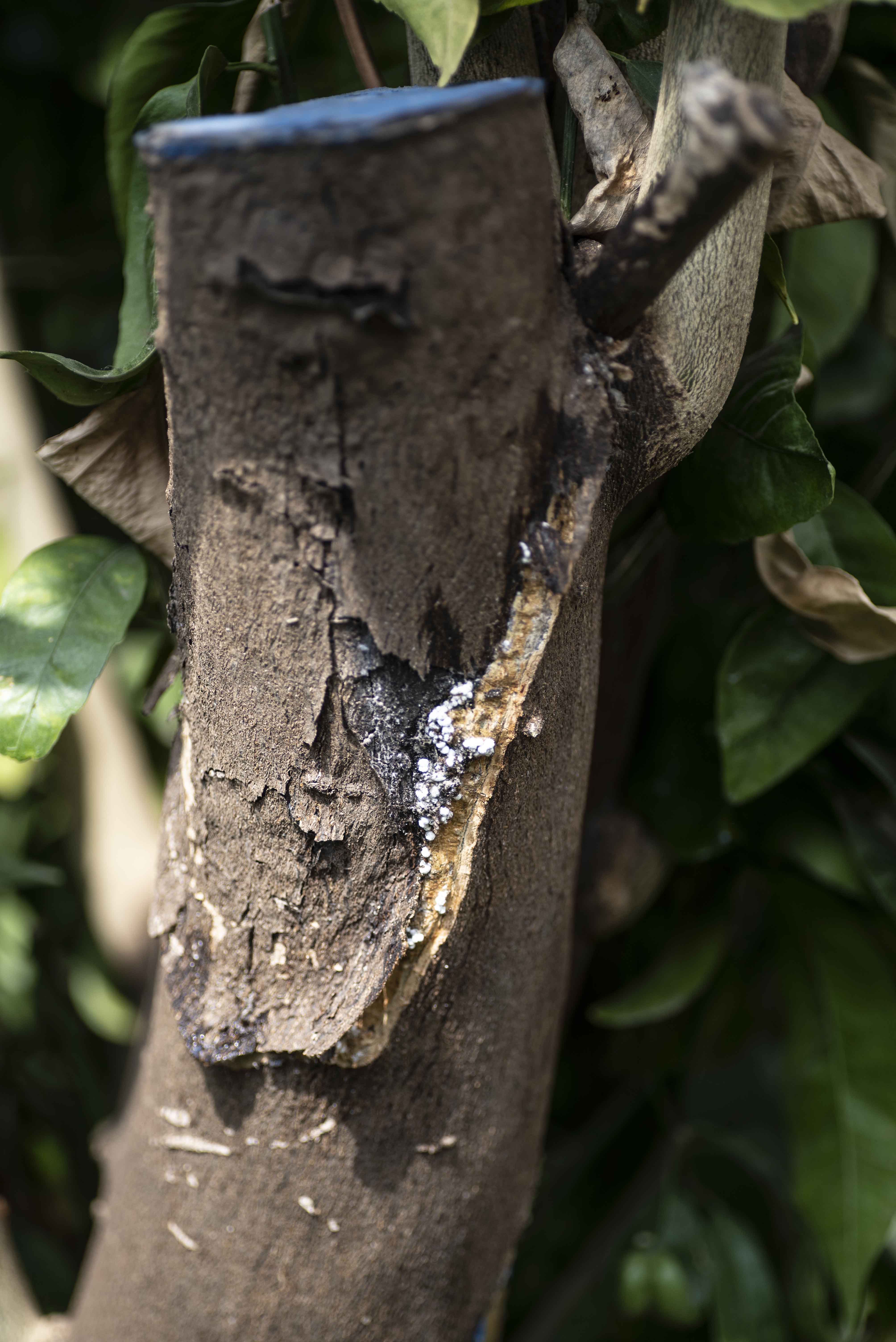 וצמח מחדש ללא מתן פרי. עכשיו גיליתי מחלה בעץ. צילמתי בעדשת מאקרו