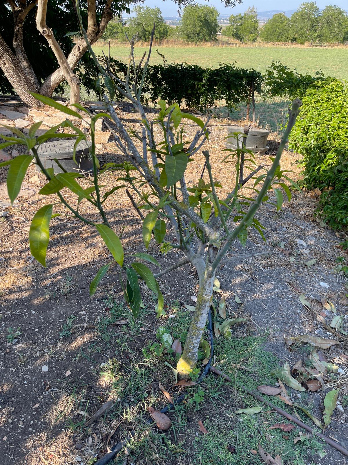 הפירות לא מחזיקים מעמד, חלקים מהעץ יבשים ומתים ויש מעין ירוקת על הגזע והענפים.