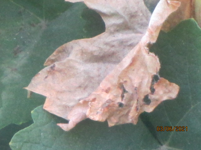 בגפן איזבלה בת 5 שנים עם ענבים בוסר בקוטר8 מ''מ, התחילו להופיע הרבה כתמים חומים עד שכל העלה מתיבש. האם כעת יעזור לגפר או חומר אחר, ואיזה , ומתי ,וכמה. מצו''ב תמונה. תודה רבה מישלי.