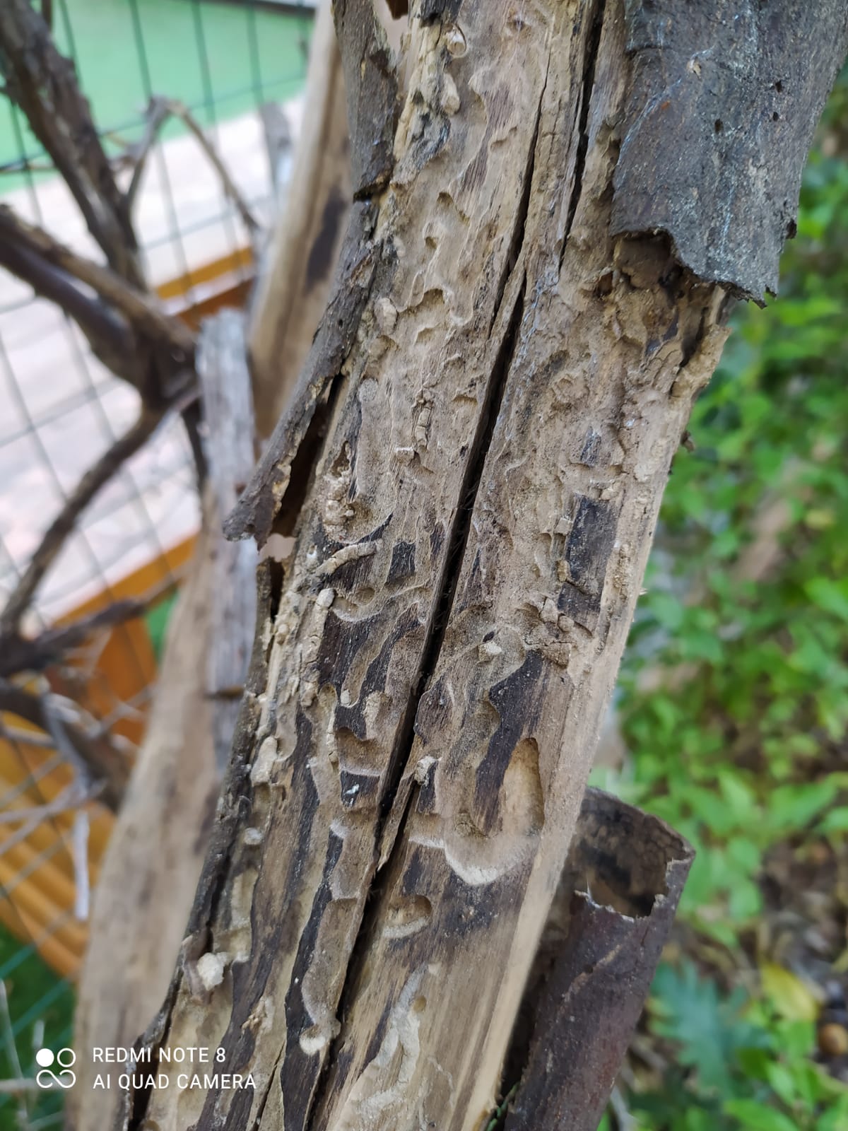היום ראיתי שבענפים המתים הקליפה נושרת ומיתחת רואים בבירור מסלולי תולעים או חיפושיות שכנראה אכלו בין הקליפה לענפים.