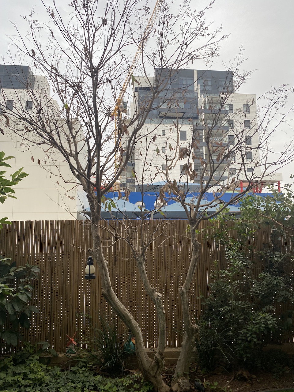 יתר הגינה לא התייבשה ואילו הליצ׳י התייבש לחלוטין ולא התחיל להצמיח עדיין עלים חדשים (עבר כחודש מאז התקרית)
