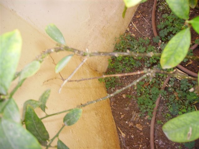 תגובה נוספת בקשר לעץ התפוז סיני - טרם עקרתי אותו אך תופעת התיישבות הענפים הפסיקה מאז ששלחתי את התמונות.