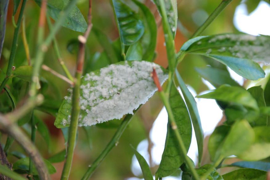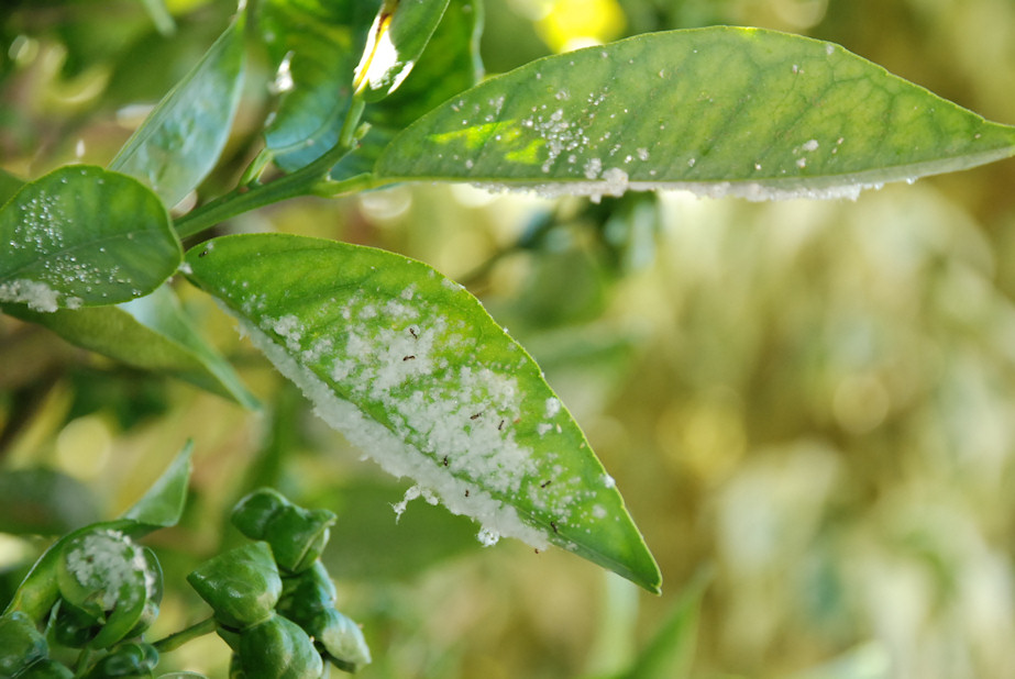 רצ"ב תמונות של לובן על גבי עלי עץ הקלמנטינה שלי. ניסיתי לרסס בספרול שהיה ברשותי וזה לא עזר.