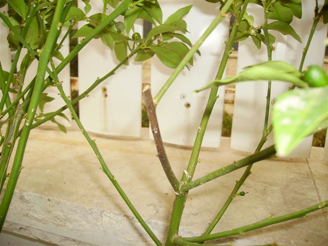 כמו אני מצרף תמונה של התפוז הסיני אשר גזמתי והוא התחיל לצמוח מה שמדאיג אותי שבקרבתו ישנו עץ לימון ננסי אשר מתחיל לראות ספטומים של