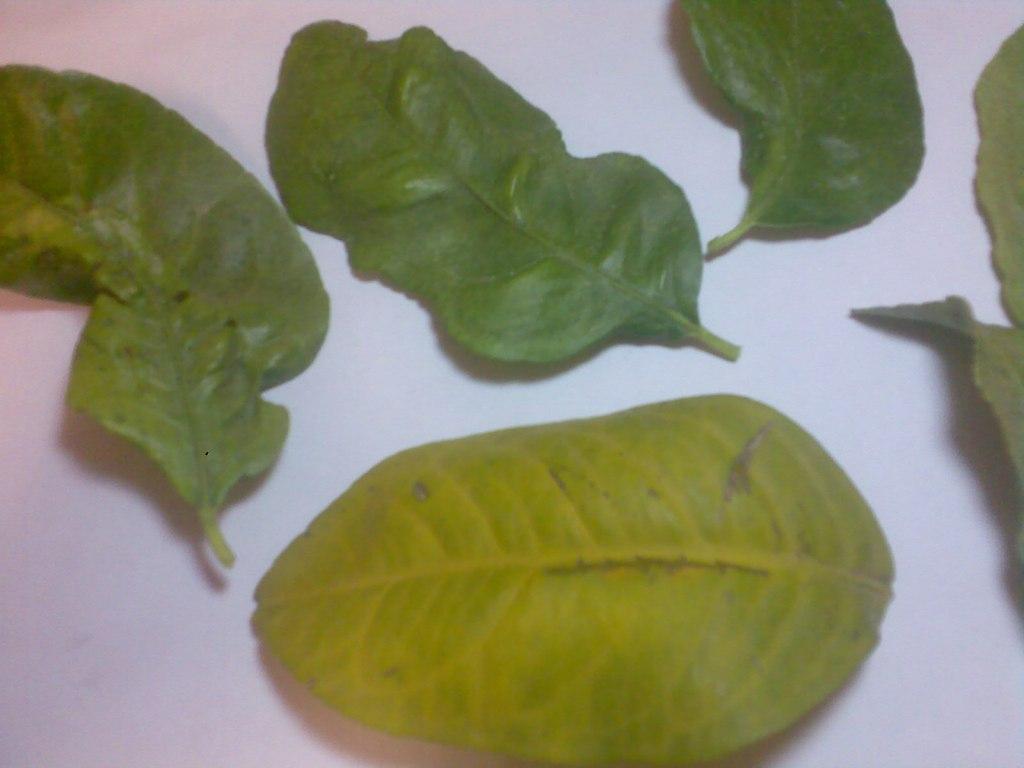 פרט לכך סימנים נוספים הם דהיית הצבע הירוק בעלים והפיכתו לירוק בהיר. מעט עלים נשרו לא יודע אם בגלל זה או לא.