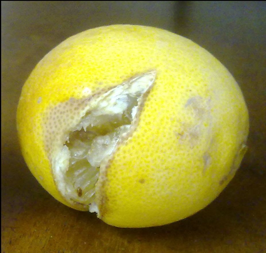 יש לי בעיה עם עץ לימון: רבים מהפירות הצהיבו, (כשהם עדיין קטנים יחסית), והתבקעו בצורה משונה, כאילו נחרצו במסמר. הם נושרים ומלאים זבובונים. מה ניתן לעשות? האם זו פגיעה של איזה מזיק? האם זה יכול להיות קשור למזג האוויר הלא רגיל ששרר באחרונה?