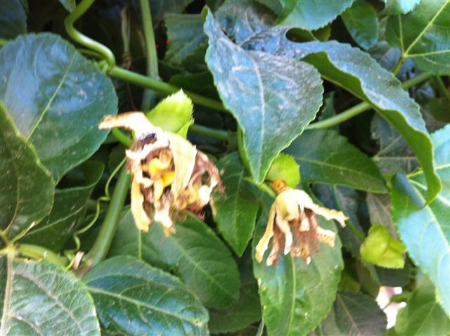 בחצר ביתנו 3 פספלורות. שתיים ותיקות ומניבות. ואחת הצעירה מבינהן מלאת פריחה אך אין עליה פירות.