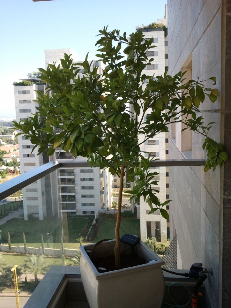 יש לי עץ תפוז ניוהול בוגר (שנה ראשונה שמוציא פרי אחרי שנתיים) גובה 1.70 שתול בכד חרס במרפסת בקומה 9 במגדל פונה לכיוון מזרח (4 שעות שמש ישירה ביום).