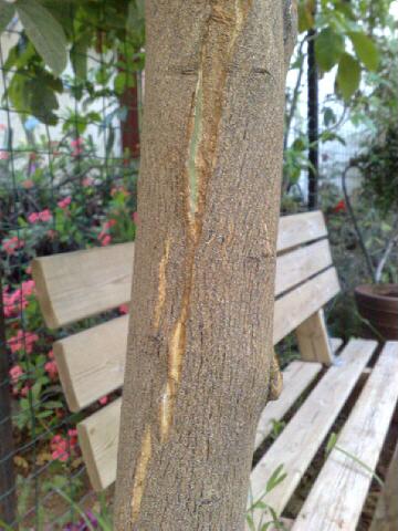 שלום רב, יש לנו עץ לימון בן 5 שנים בערך, צומח מהר, מלבלב ונותן הרבה פרי. בעונה הקודמת הופיעו חריצי בקע על הגזע ועל התפצלויות הגזע לכיוון מעלה. נראה שהן החלו להתכסות בקליפה במהלך השנה, אולם כעת שוב חריצים החלו להופיע, ויש אחד יחסית עמוק (עד לשכבה הירוקה) שנראה כמו התבקעות. העץ ממשיק לפרוח, לצמוח ולתת פרי כרגיל. מה יכולה להיות הסיבה לכך ומה הטיפול שהעץ דורש? אני מצרף תמונות. תודה רבה, תומר