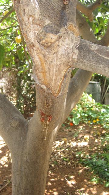 לפני כשנתיים זה קרה והסרתי את השרף ואת הקליפה הנגועה ע"י קילוף ונתתי למקום להתייבש.