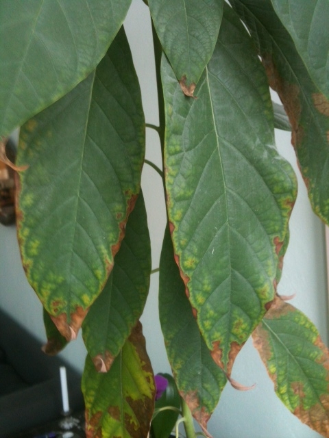 צר לי אך איני יכול להצטרף לצפירת הארגעה של ידידי. אין זו "תופעה מוכרת חורפית", אלא מופע מוכר בהחלט של מחלה פטריתית בשם Dothiorella gregaria הנגרמת על ידי פתוגנים פטריתיים שונים. אם יטופל כראוי, העץ לא יקרוס ויש סיכוי שישתקם. ברם, אבוקדו אינו אמור לצמוח לאורך זמן בתנאים בו הוא נמצא אצלך. זהו עץ שמקורו באמריקה הטרופית וזה אומר שני דברים: זקוק לכמויות מים גדולות, ורגיש לתנאי מזג האוויר בסביבה. במקורו הוא גדל בתנאי חום, לחות ואיוורור גבוהים. אלו לא תנאים מצויים בברלין בלב החורף. נסה לעשות את המיטב: דאג שלא תהיה חסימה לזרימת אוויר סביבו; הרחק אותו מקירבה למזגן; מצב אותו בקירבת חלון רחב עם שמש ישירה לאורך זמן ככל שניתן; וכאמור, דאג להשקותו בנדיבות. חובה לדאוג לכך שחלק ניכר מהמים המוגשים לו (לפחות 30%) יזלגו החוצה מעבר לכל צלחת תחתית שעשויה להיות מתחת למיכל. כלומר, או שהעציץ יהיה בקירבת פתח ניקוז בריצפה, או שתוביל את העציץ למקום מתאים להשקיה. הניקוז חשוב למניעת הצטברות מלחים במצע.