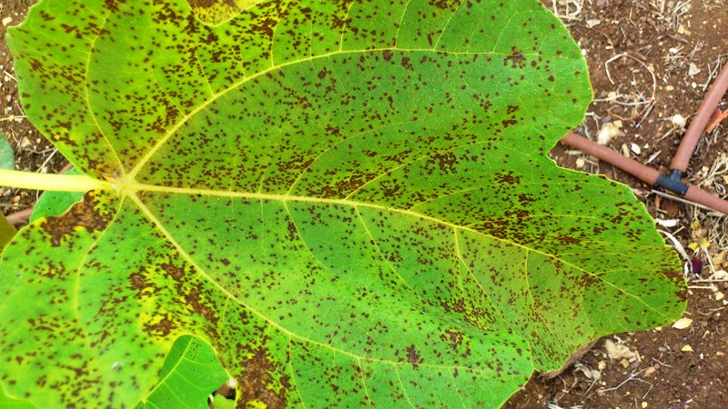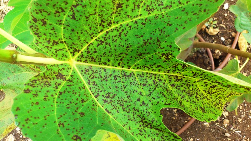 בגפן זה מכסה את שטח כל העלה, בתאנה נקודות גדולות ובשזיף נקודות קטנות