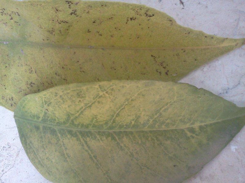 חלק ממהעלים ממשיכים להצהיב עוד מהאביב,יש נשירת עלים קלה ,על העלים המצהיבים יש כתמים שחורים קטנים .