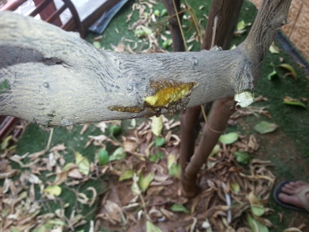 בחודש האחרון התחילה תופעה של התייבשות העלים ולאחר מכן הענפים תופעה שהולכת ומתגברת וכן הופיעו נגעים במספר ענפים כמו בתמונות המצורפות. בנוסף העץ התחיל להפריש שרף.