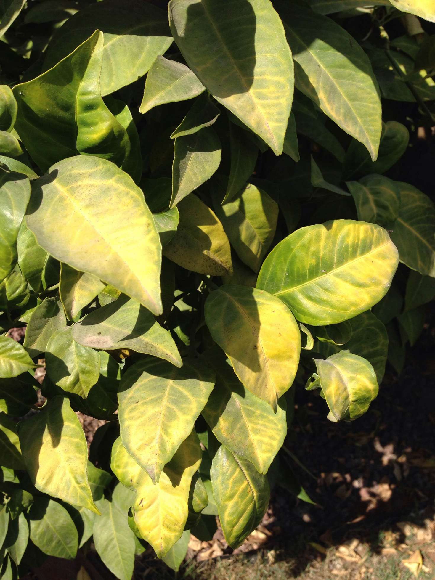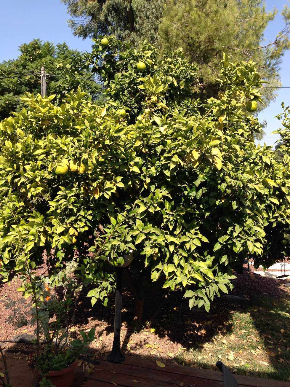 בנוסף, עץ התפוז הותיק נראה כאילו מתחיל לסבול גם הוא מצהבת. נתוני ההשקייה זהים אלא שלעץ יש כ- 15 חורים והוא כבן 20 לפחות.