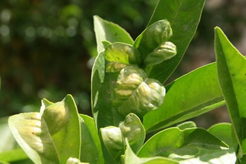 חלק גדול מהעלים מצהיב. עלים חדשים מתקפלים ומקבלים גוון צהוב.