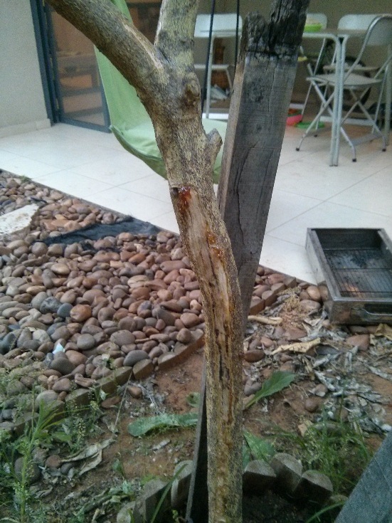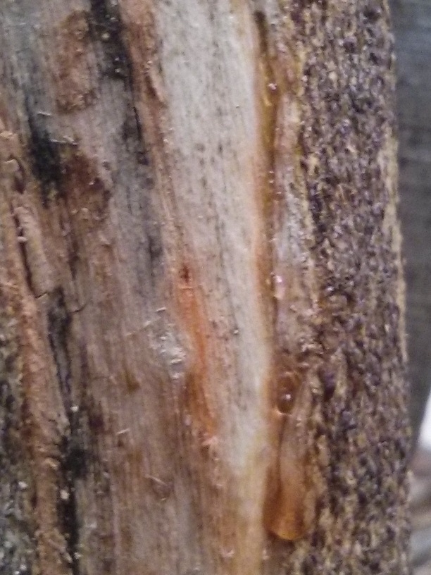 כרגע יש שרף באיזורים בהם קולפה הקליפה בקצוות וכן בצד הנגדי של הנקב.