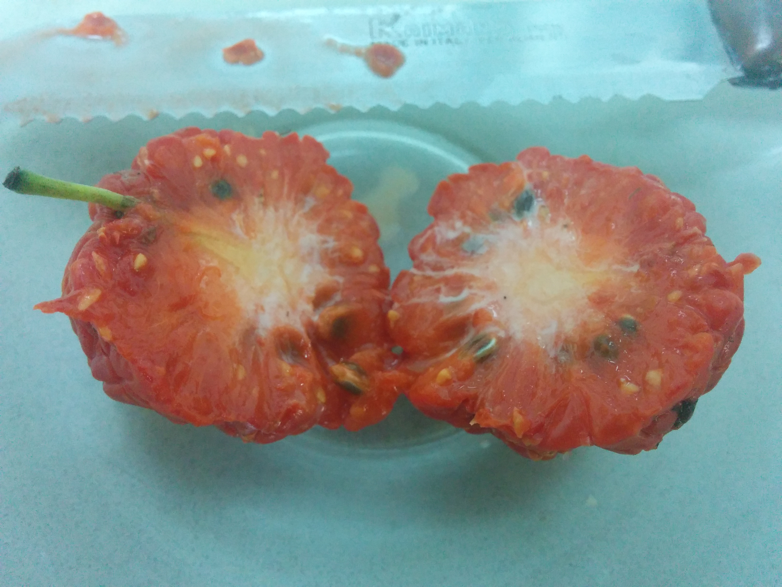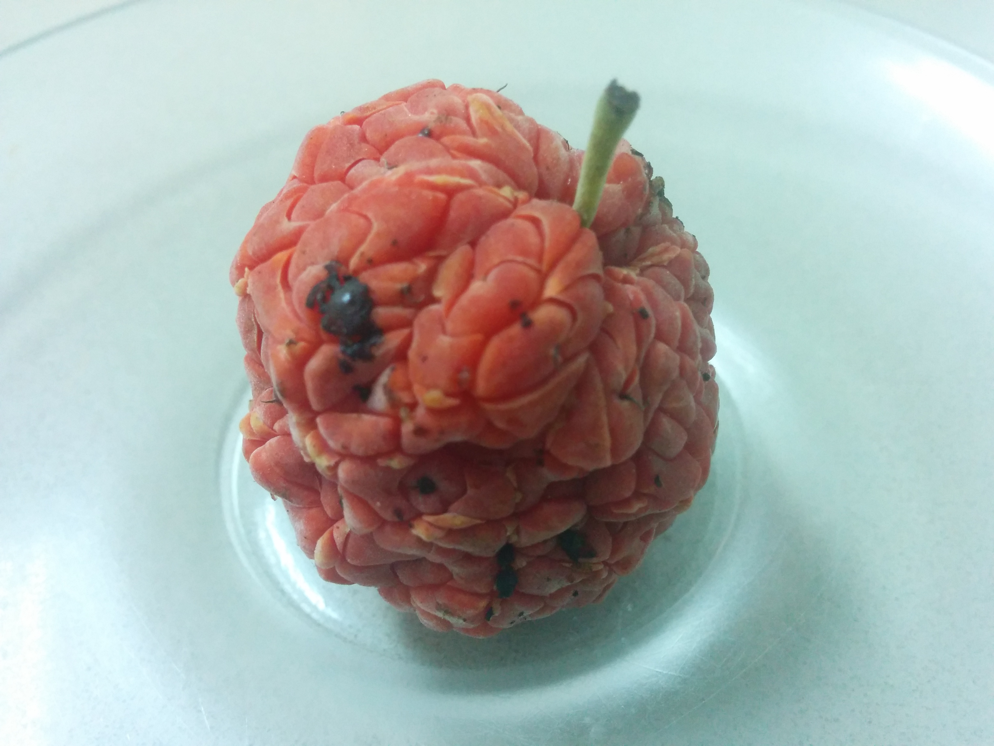 בבית התברר שאת הפרי אין צורך לקלף, אין לו גלעין והוא ברובו אדום מבפנים. טעמו של הפרי הוא מתוק.