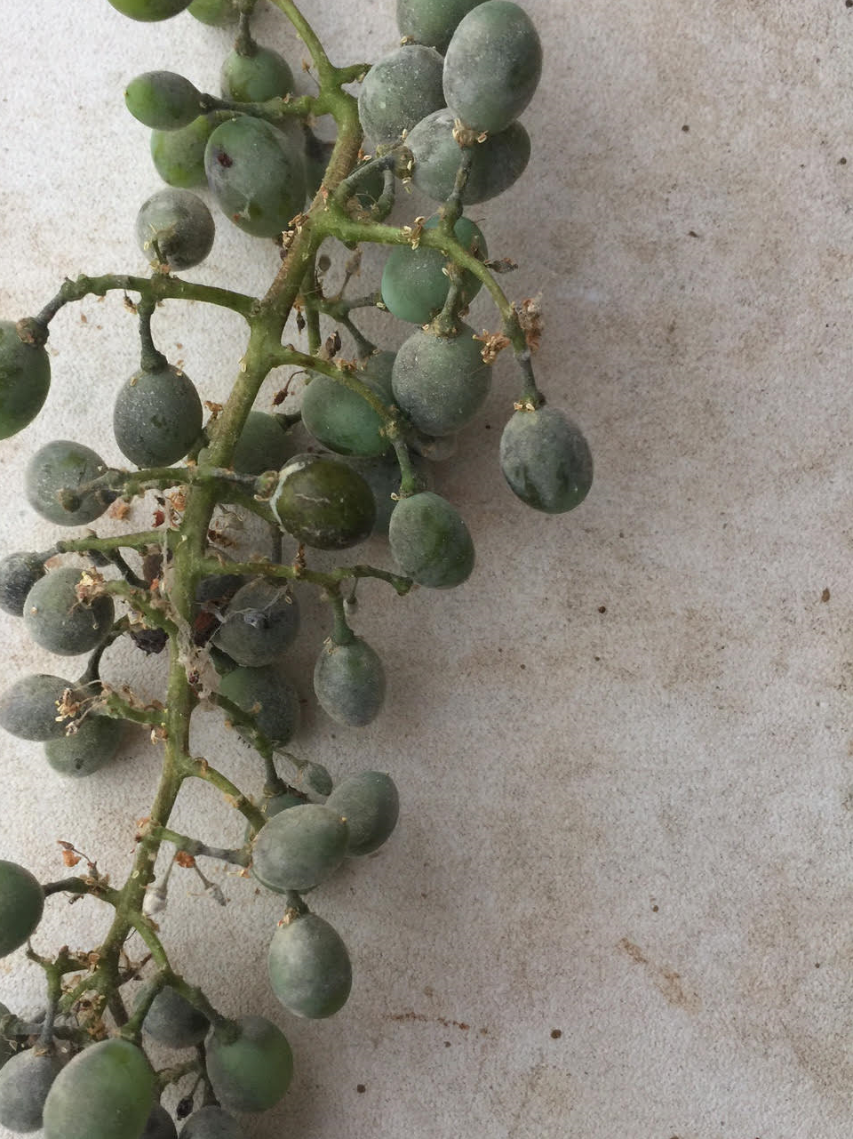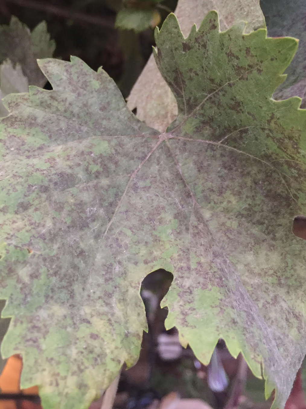 יש מעין ציפוי על העלים והאשכולות של הגפן, מצורפות תמונות. כשמשפשפים את הענב נראה שזה מתנקה, בעלה זה לא מוסר.