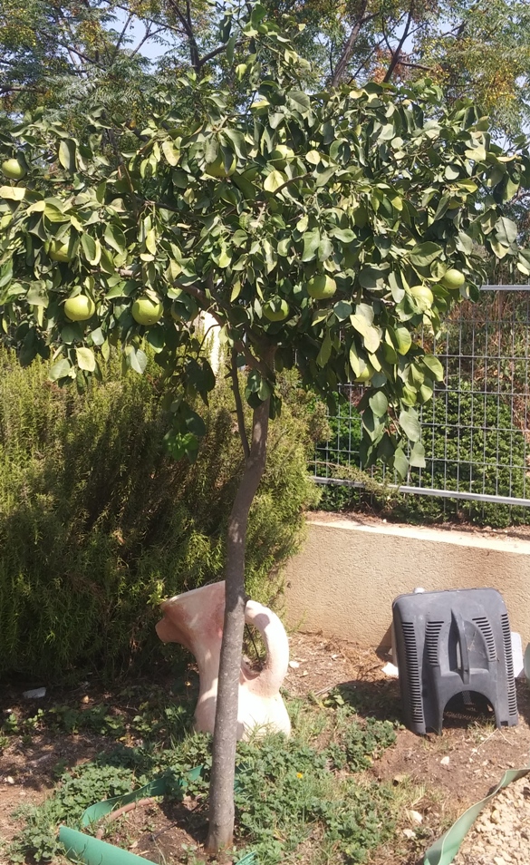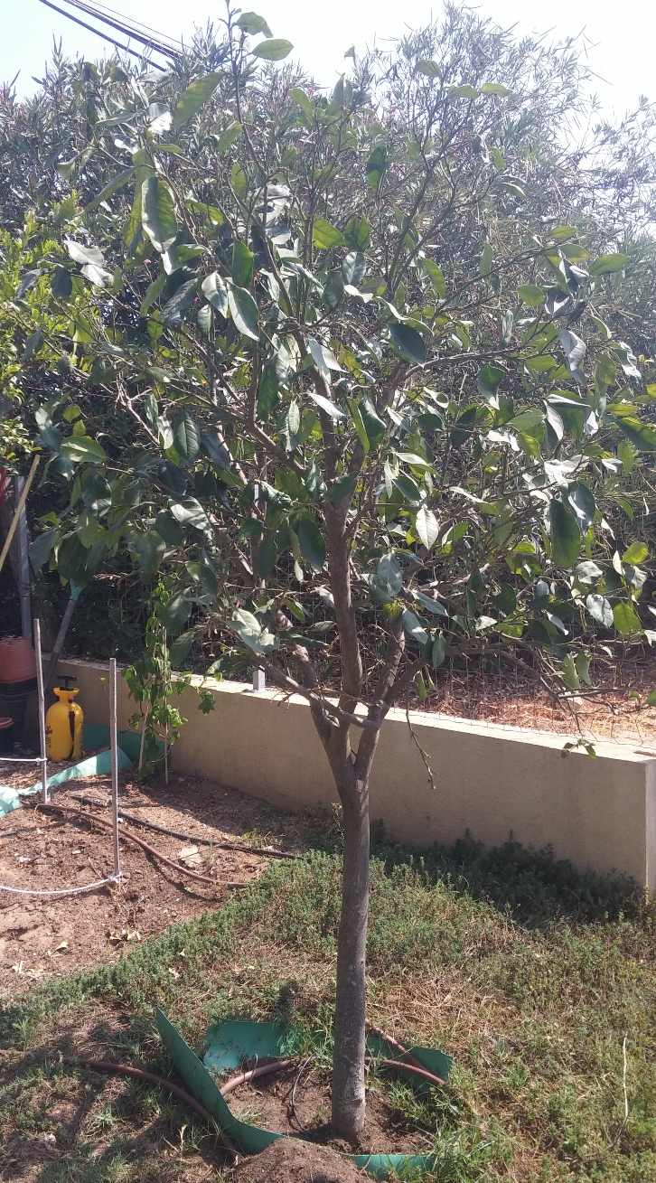 בגינתנו שתולים (בין היתר) עץ פומלית ועץ אשכולית צעירים.