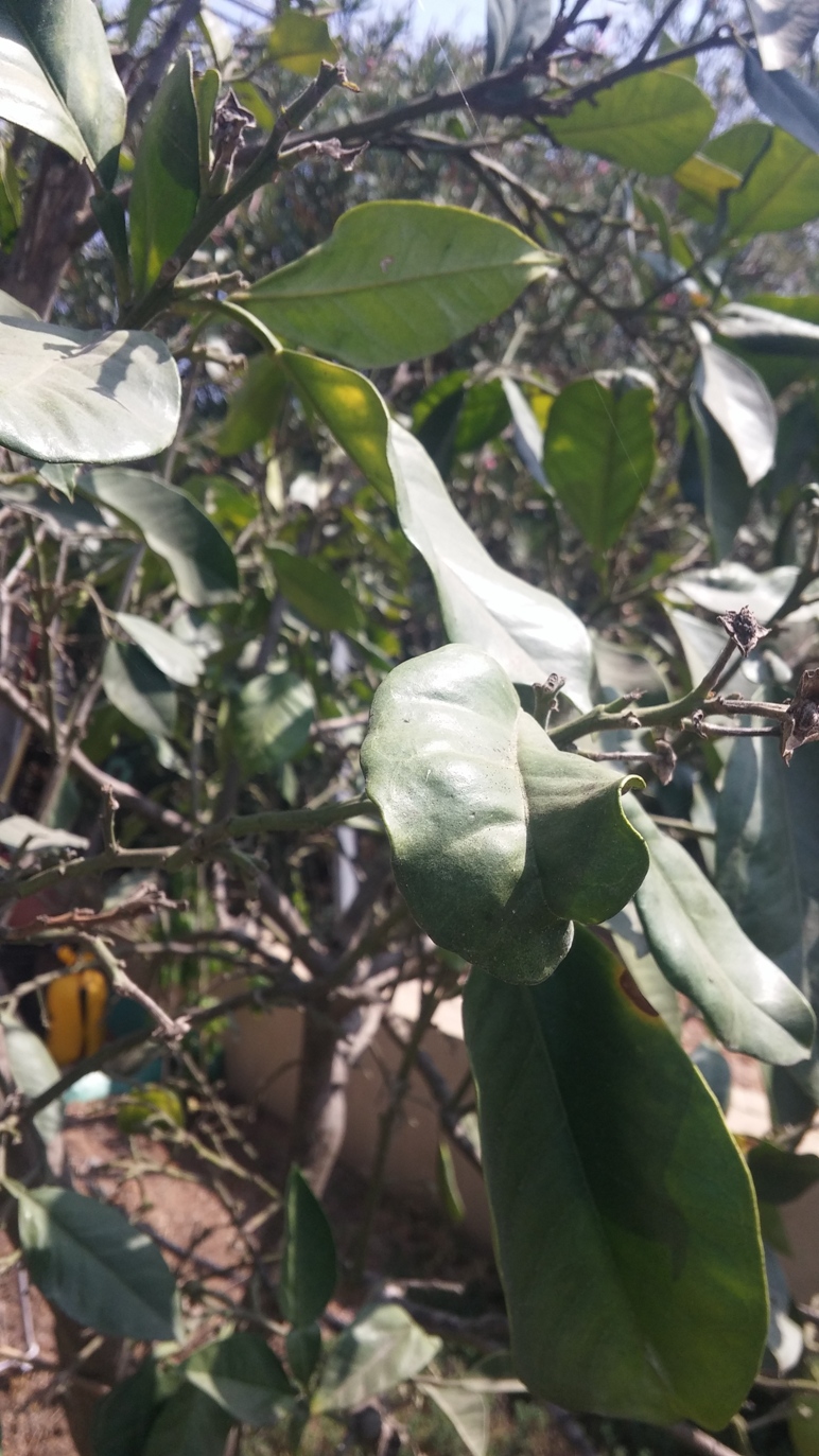 לא חישבתי את כמות המים המדויקת (על בסיס המספר המדויק של חורי הטפטוף הסמוכים לכל עץ), אבל אני בספק האם המצוקה של שני עצי ההדר נובעת (רק) ממחסור במים מאחר שכמות המים הניתנת לעצים לא הופחתה ביחס לשנים קודמות (ההפך הוא הנכון - הוספתי עוד טפטפת 8 ל/ש בכל אחד מעצים ובימי הקיץ החמים אני גם ממילא לפעמים את גומות העצים במים), וכך גם - בסמוך לשני העצים, על אותו "קו" טפטפות, שתול עץ מנגו צעיר (אשר לפי הבנתי זקוק לכמות מים לא פחותה מעצי הדר) והוא, להבדיל משני עצי ההדר האלו, נראה מאושר...