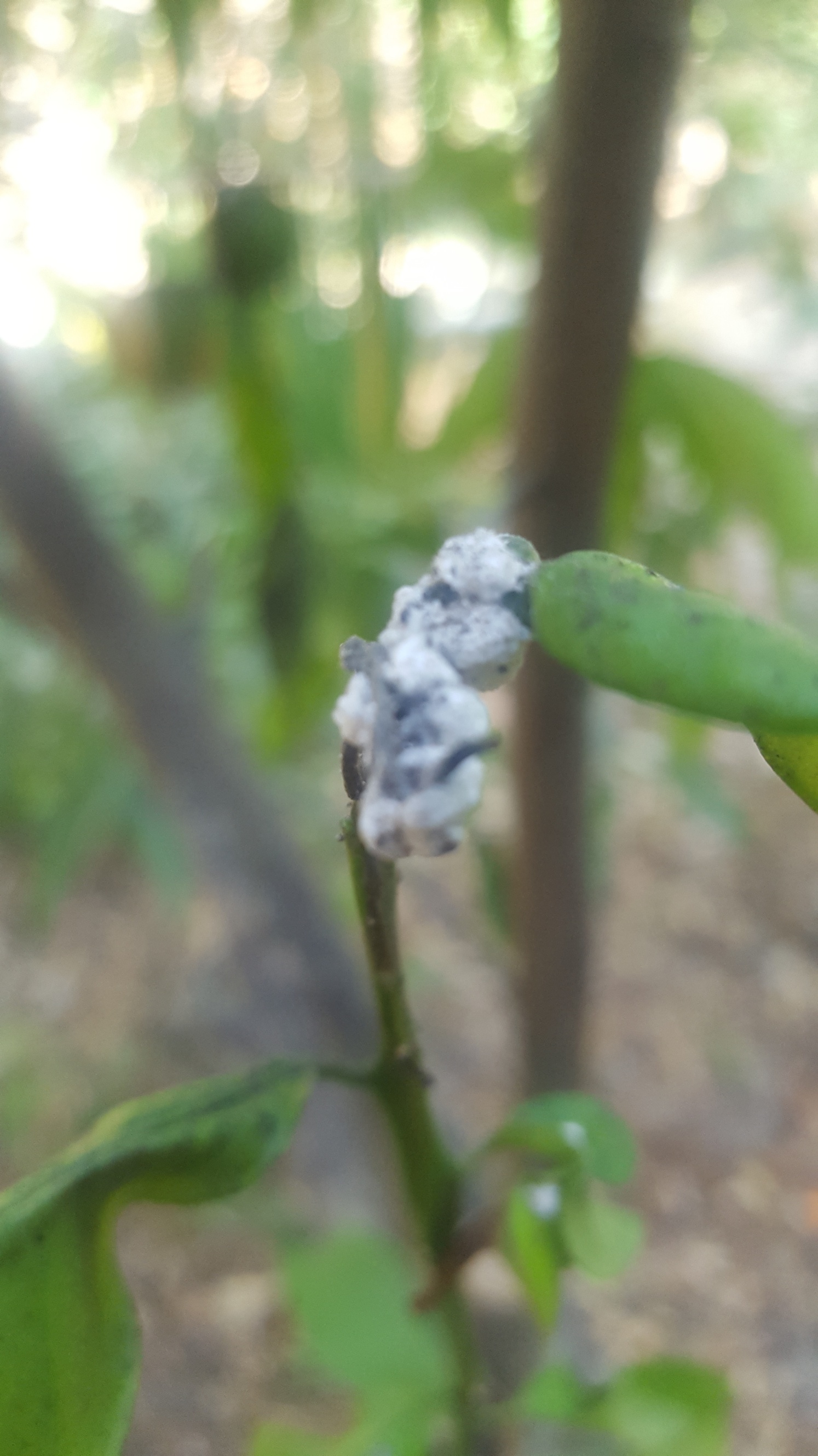 לעץ קלמנטינה שלי יש כמו כדוריות לבונות צמריריות על הענפים.