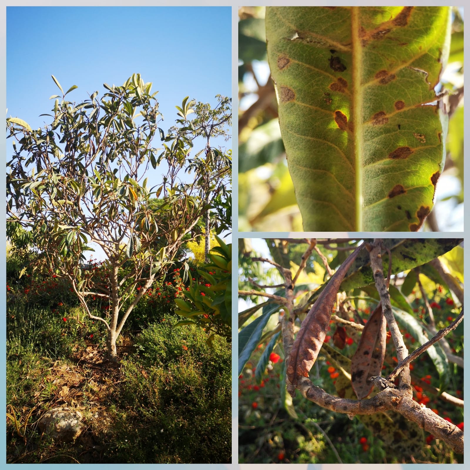 שלום. בעץ שסק נטוע כשבע שנים. בגבעת ברנר. עלווה דלילה ונגועה וענפים מתייבשים. היו העונה פירות טובים ולא נגועים. יש מעט לבלוב אך העץ דליל הענפים הדקים יותר מתייבשים ובכלל העץ נראה עלוב ביחס לשנים קודמות. מושקה כפעם בשבוע בהגמעה כ50 ליטר ועוד מעט טפטוף בכמות לא ידועה אשמח לזיהוי הבעייה ולהצעה לפיתרון. מצורפות תמונות. תודה