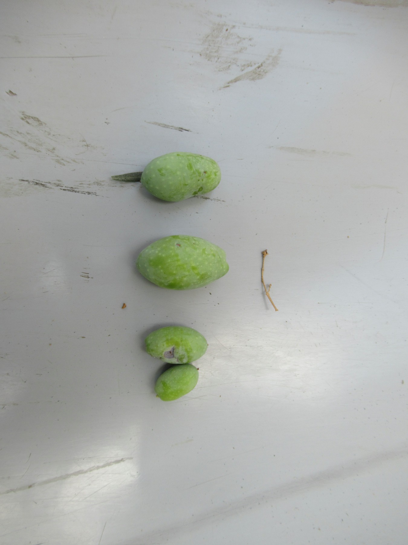 מצורפים כמה תמונות של העץ עצמו ושל פירותיו (חלק ירוקים וחלק ניכר כבר השחירו ונפלו מן העץ).