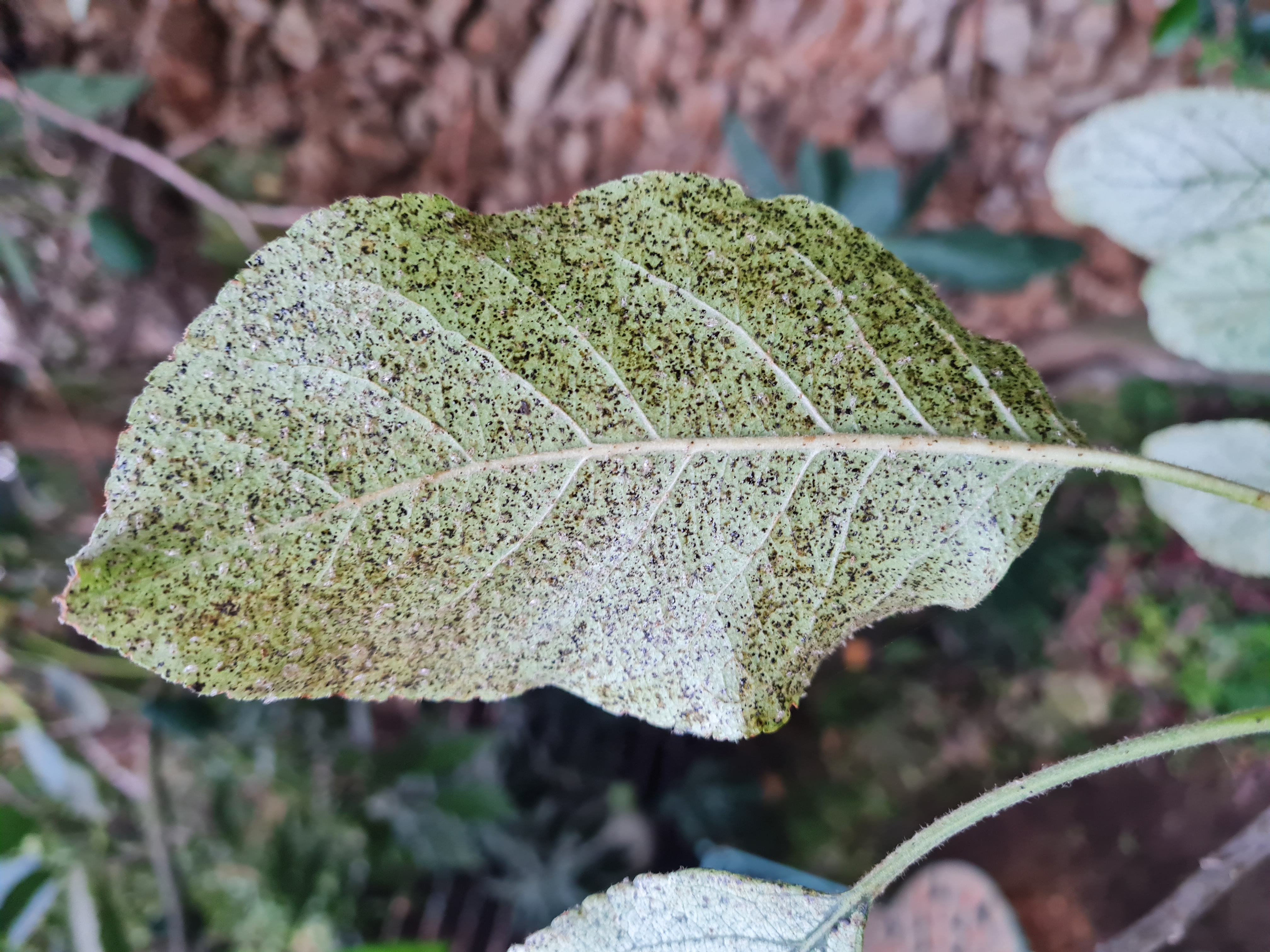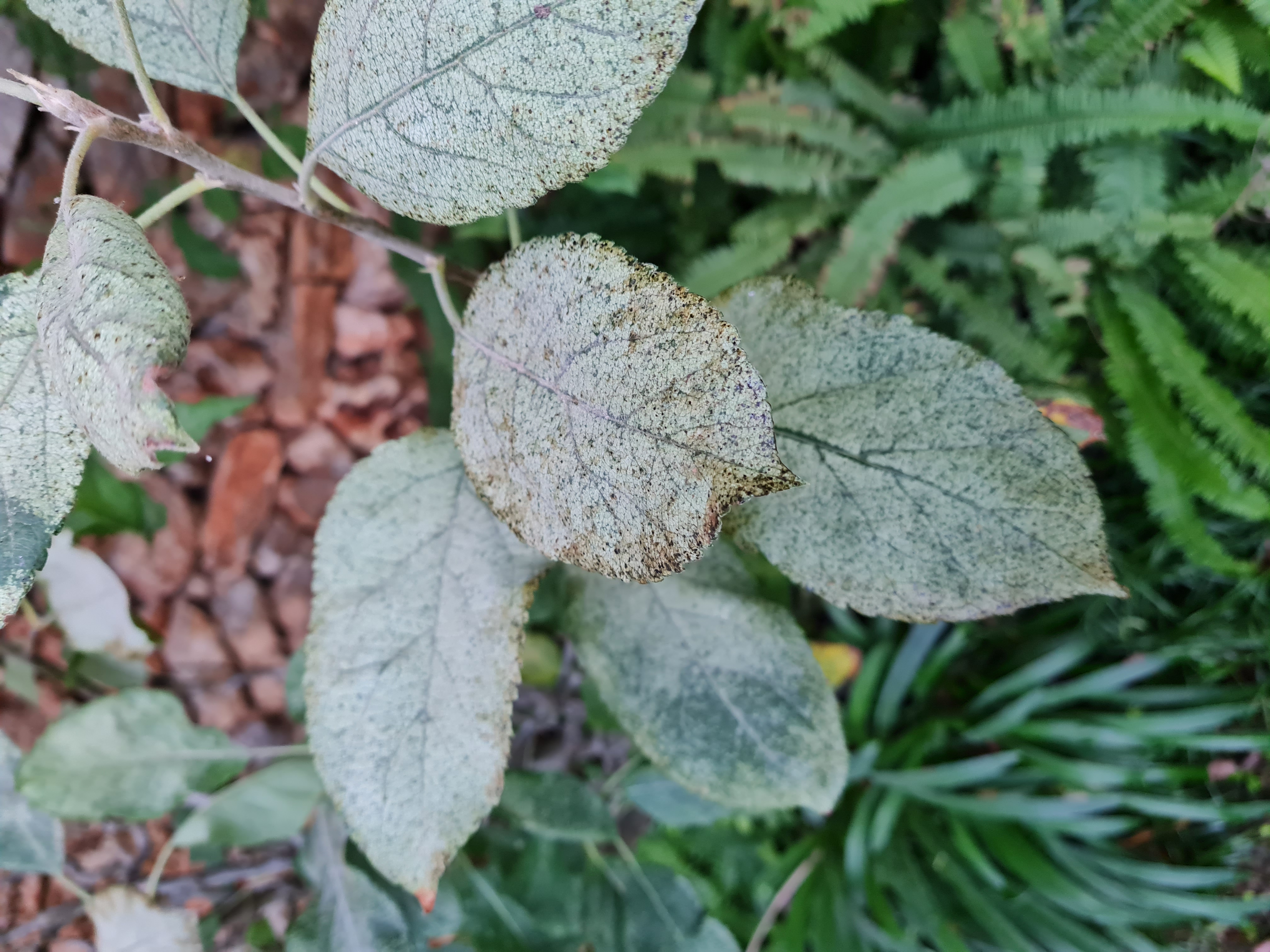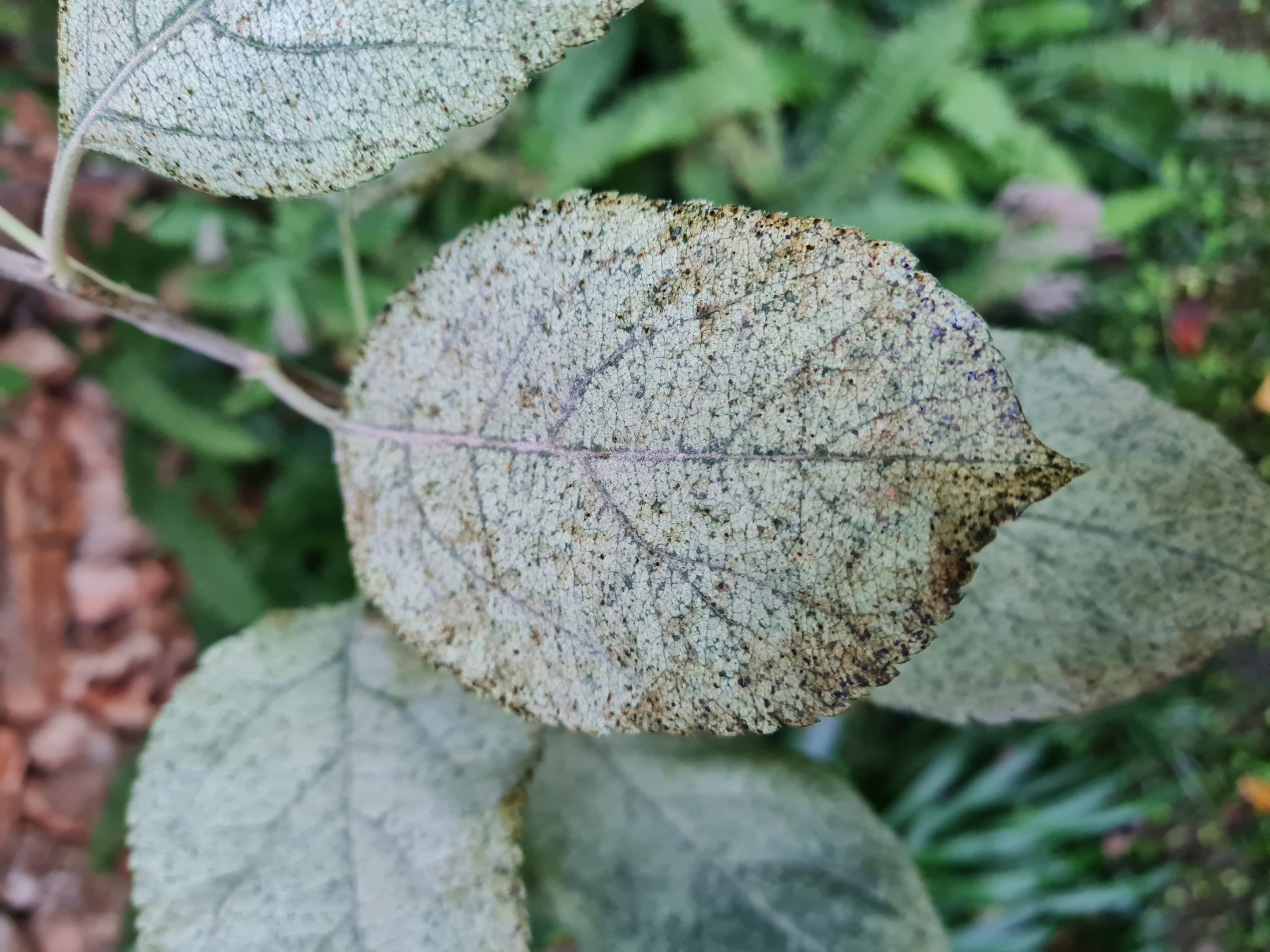 עץ תפוח צעיר יחסית התמלא במחלת עלים,