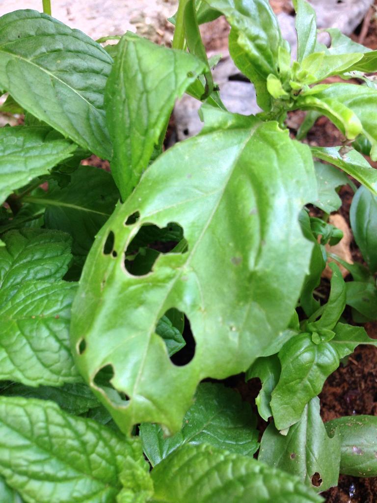 בגינה הקטנה שלי, העלים של הבזיליקום אכולים/חולים.