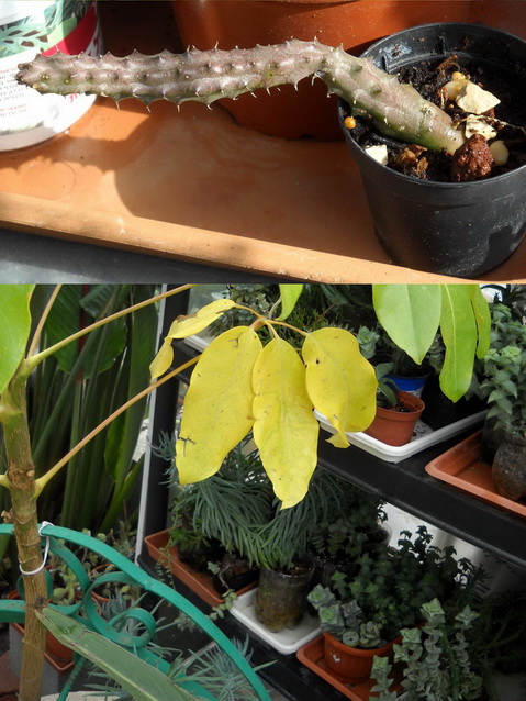 2) יש לי קקטוס איני יודע את שמו והוא נעשה אדמדם כאשר הצבע הקודם שלו היה ירוק יותר,
