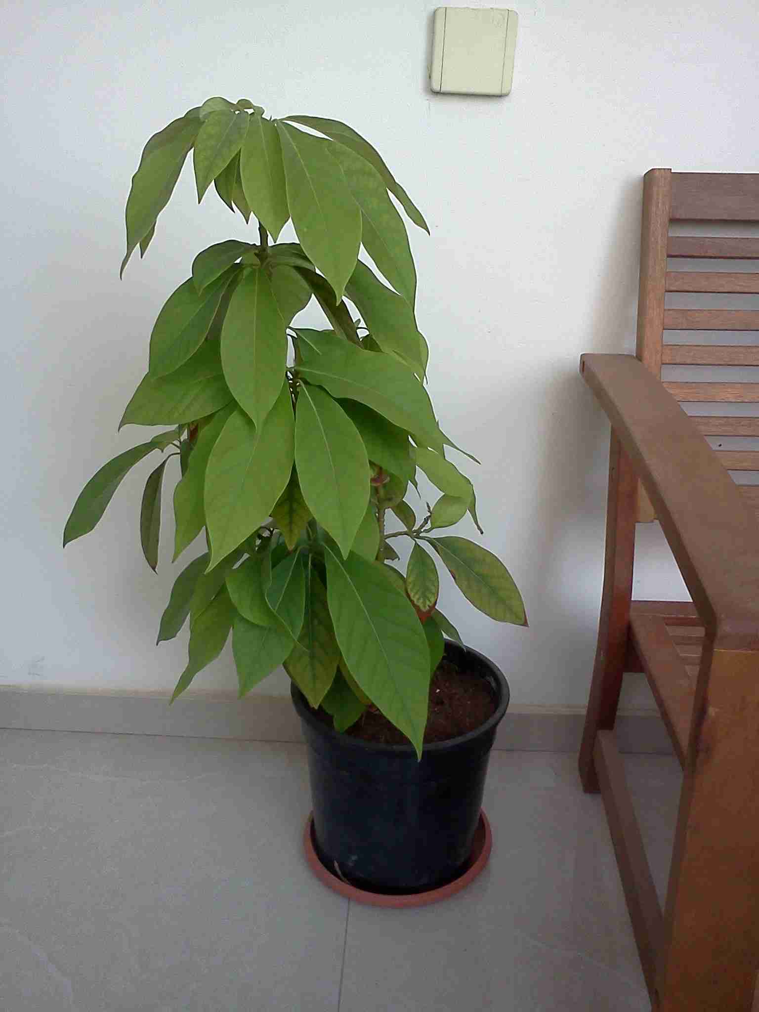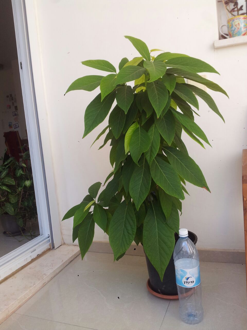שתיל אבוקדו, גדל בעציץ במרפסת כיוון מזרח, למעלה משנתיים