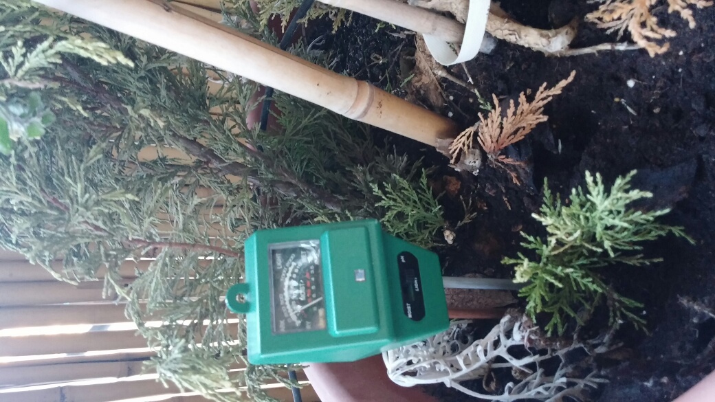 שמתי מודד חומציות, שמראה על אדמה חומצית בסביבות 7.