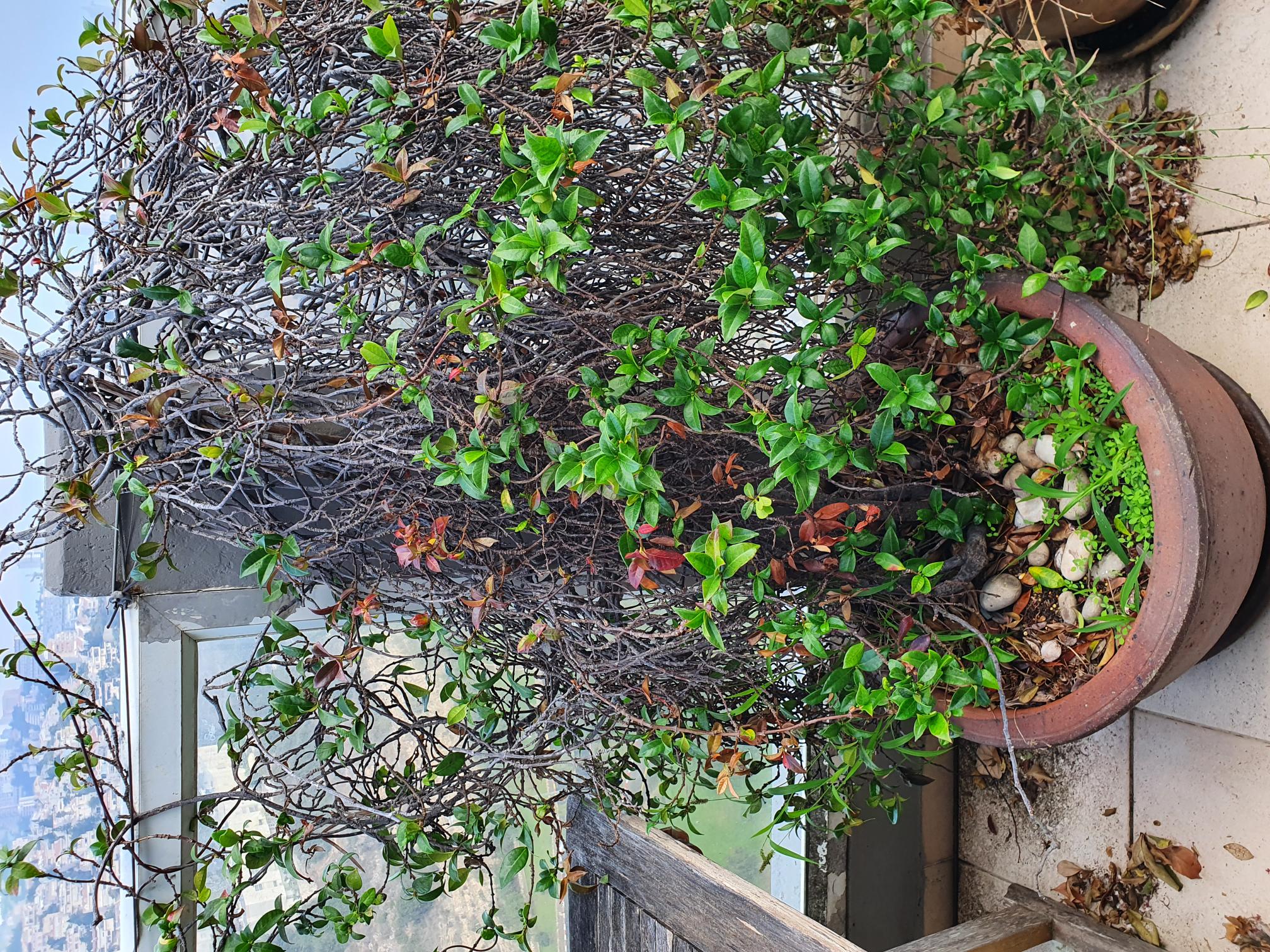 או לקצצ בשורשים לפחות שליל מנפחם. להחזיר למיכל הקיים ולמלא אדמת עצים טריה+ הומוס.